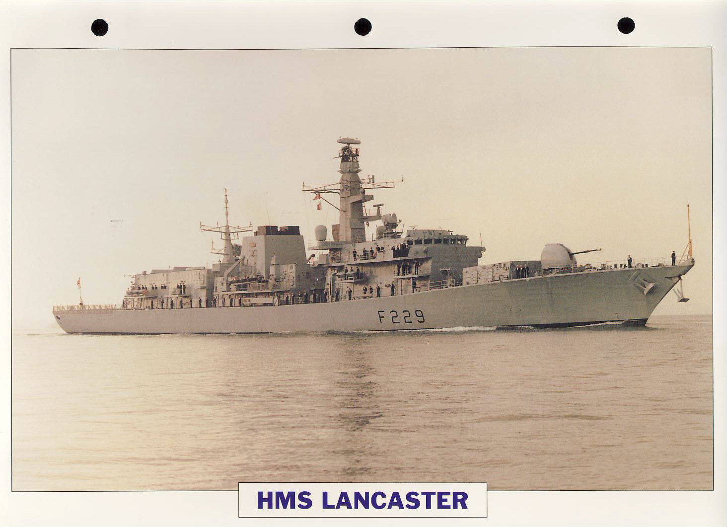 HMS LANCASTER 1990 guided millile frigate Navy Ship Photo Info Card refA2