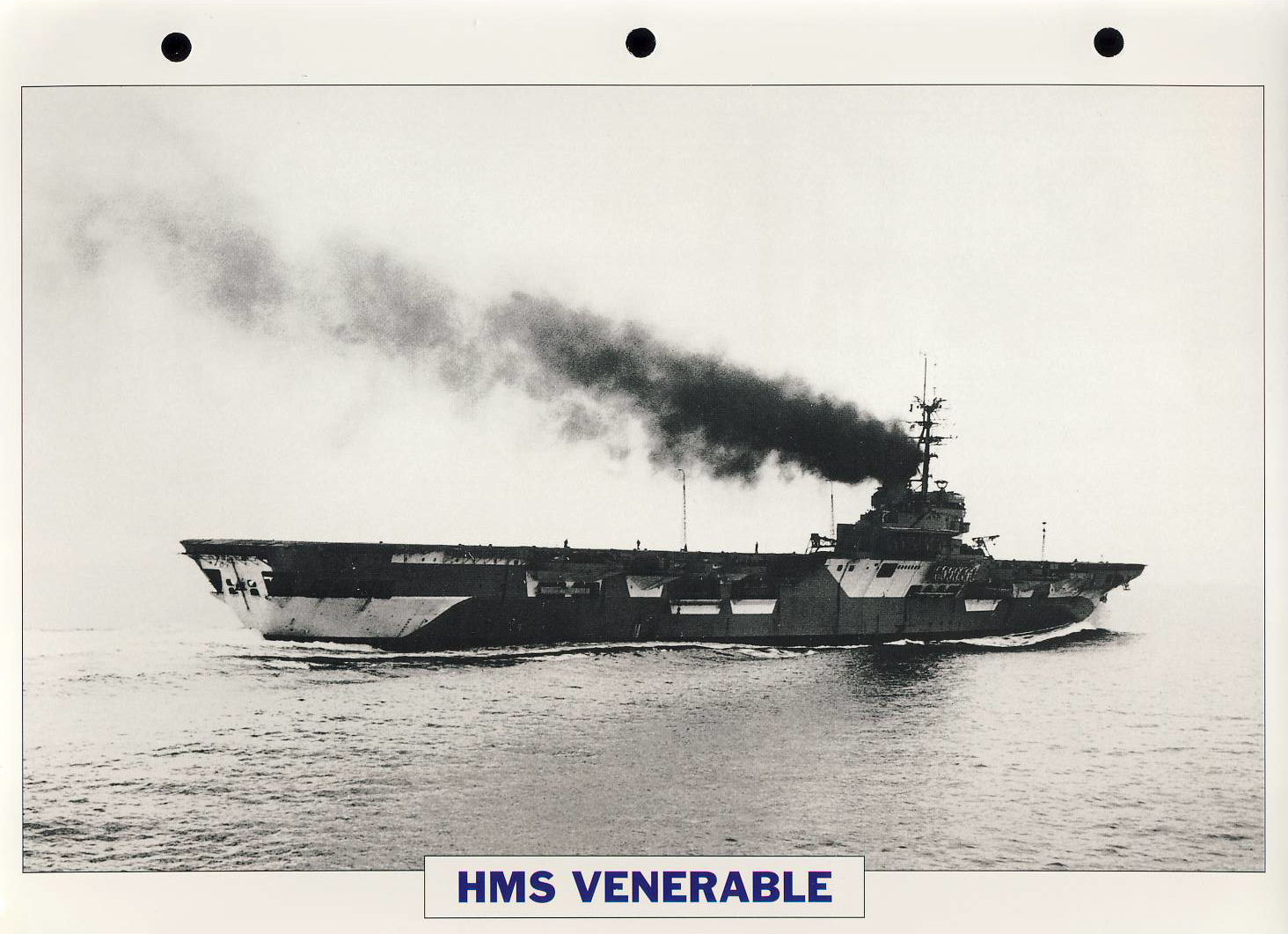 HMS VENERABLE 1943 light aircraft carrier Navy Ship Photo Info Card refA2