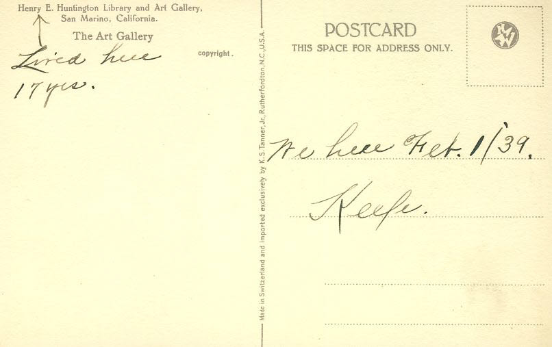 Huntington Library & Art Gallery San Marino California Vintage Postcard refP1 Please see BOTH large photos and description for details.