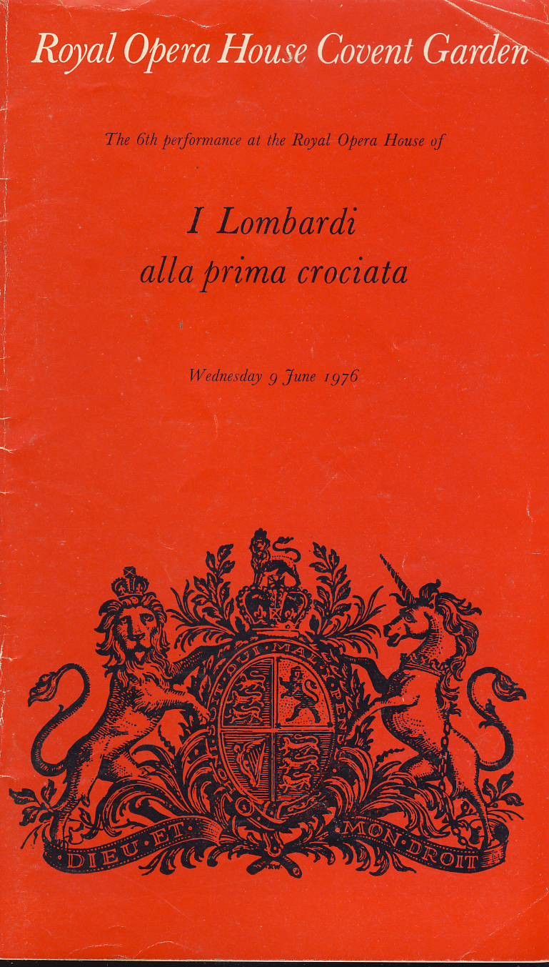 I Lombardi alla prima crociata 1976 Programme Royal Opera House Covent Garden C320