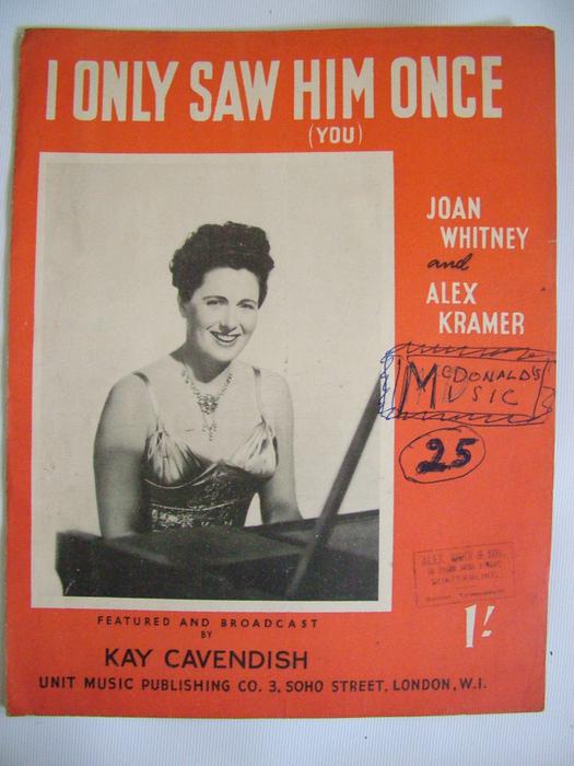 I Only Saw Him Once (you) KAY CAVENDISH Whitney andKramer vintage sheet music