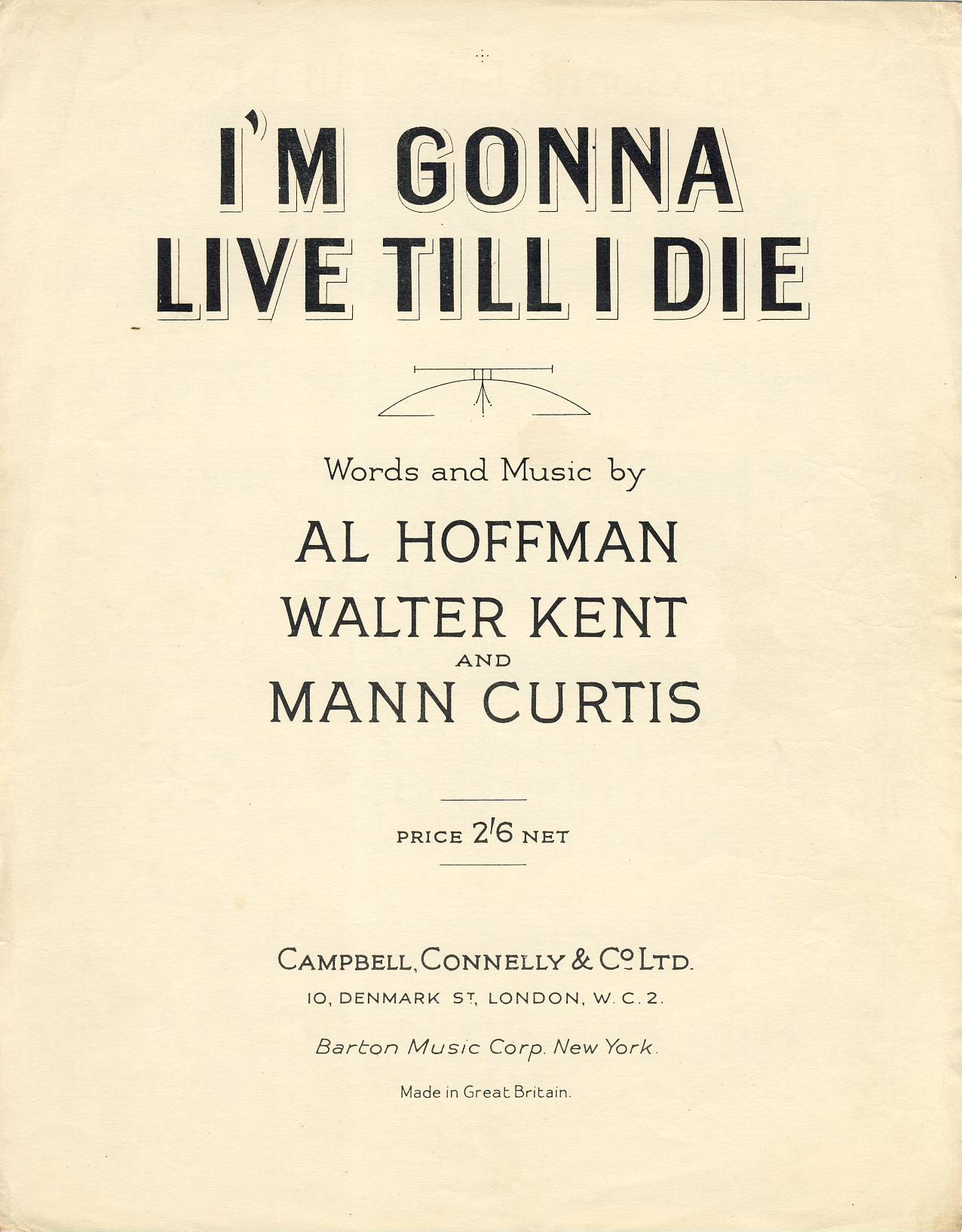 I’m Gonna Live Till I Die AL HOFFMAN, WALTER KENT, MANN CURTIS vintage sheet music and words ref102841