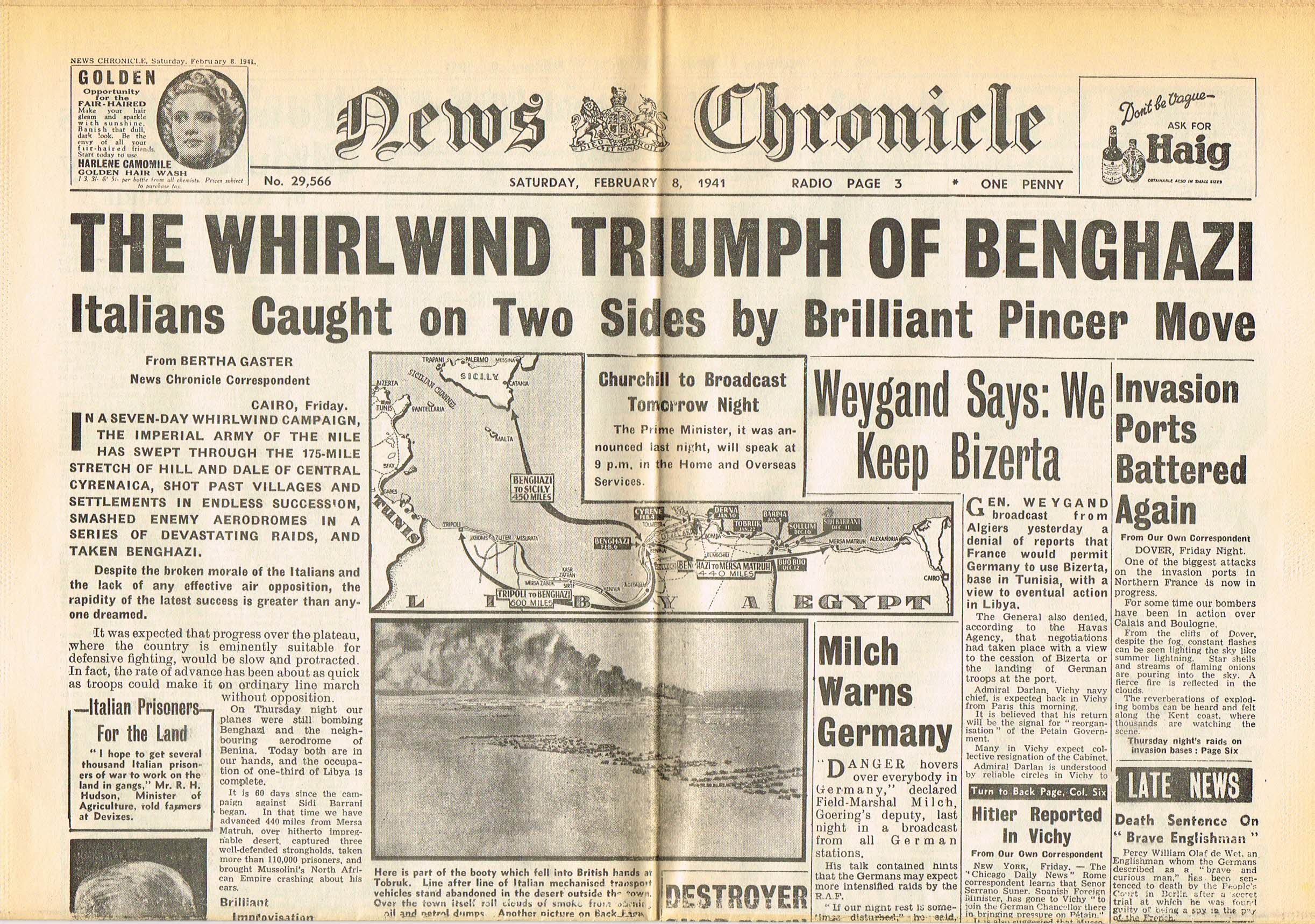 Images of War no.4 NORTH AFRICA BENGHAZI The Real Story of World War II. Magazine, campaign map and 4 page reproduction newspaper all in good condition.Part of the Marshall Cavendish Collection in association with the Imperial War Museum. Magazine, campaign map and 4 page reproduction newspaper. Kept in a protective plastic cover. All in good condition. Please see photos and full description.Condition ReportAll in good condition, magazine complete with campaign map and 4 page reproduction newspaper. Kept in a protective plastic cover (name written on plastic cover)ReferenceImages of War no.4 NORTH AFRICA BENGHAZI Magazine Campaign Map & Newspaper