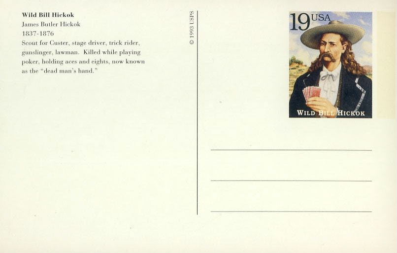 James Butler Wild Bill Hickok Scout for Custer 1993 USPS Postcard refUSA P4 printed stamp