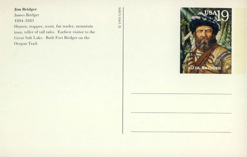 Jim James Bridger 1804-1881 Oregon Trail 1993 USPS Postcard refUSA P4 printed stamp