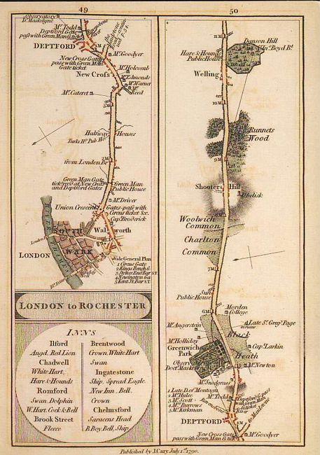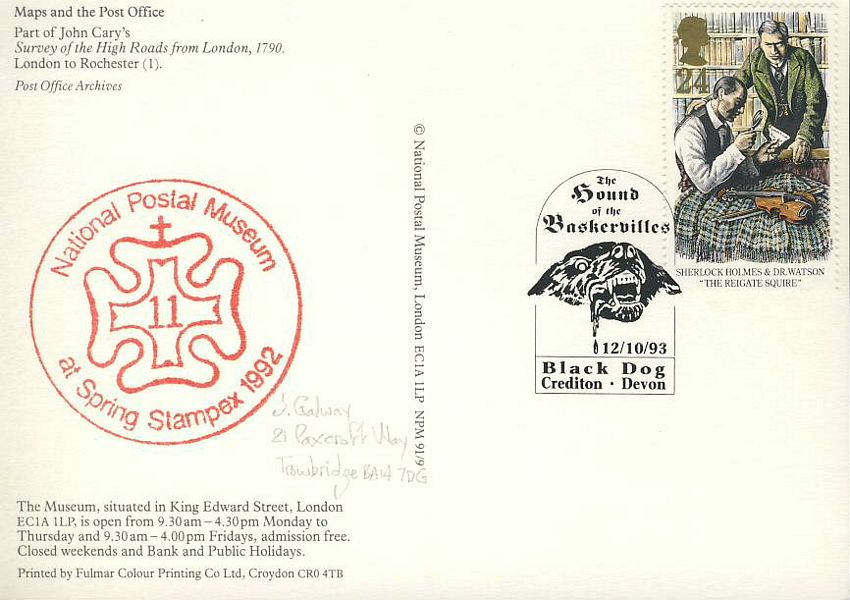 John Carys 1790 Maps London Rochester POSTCARD Baskervilles Black Dog handstamp