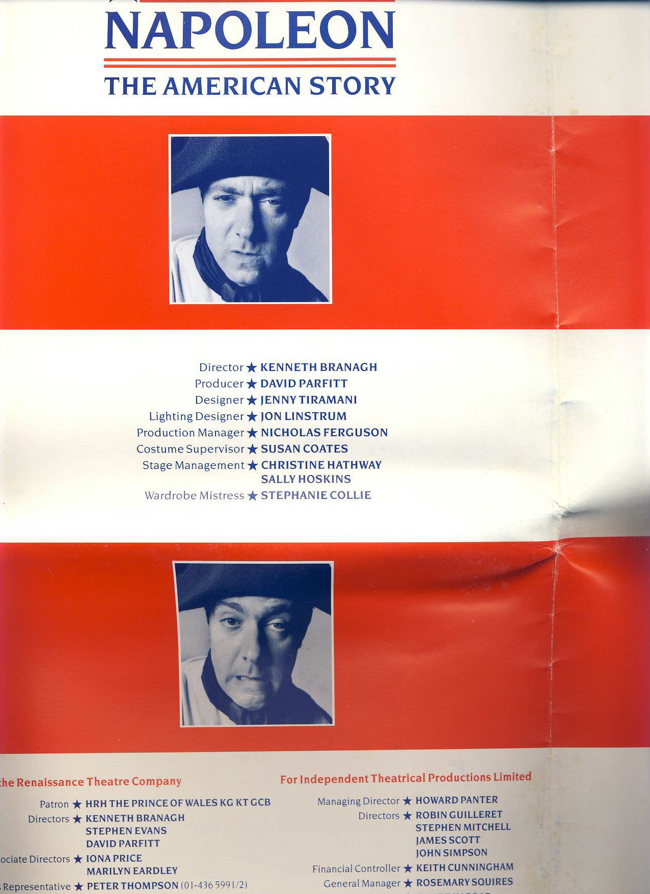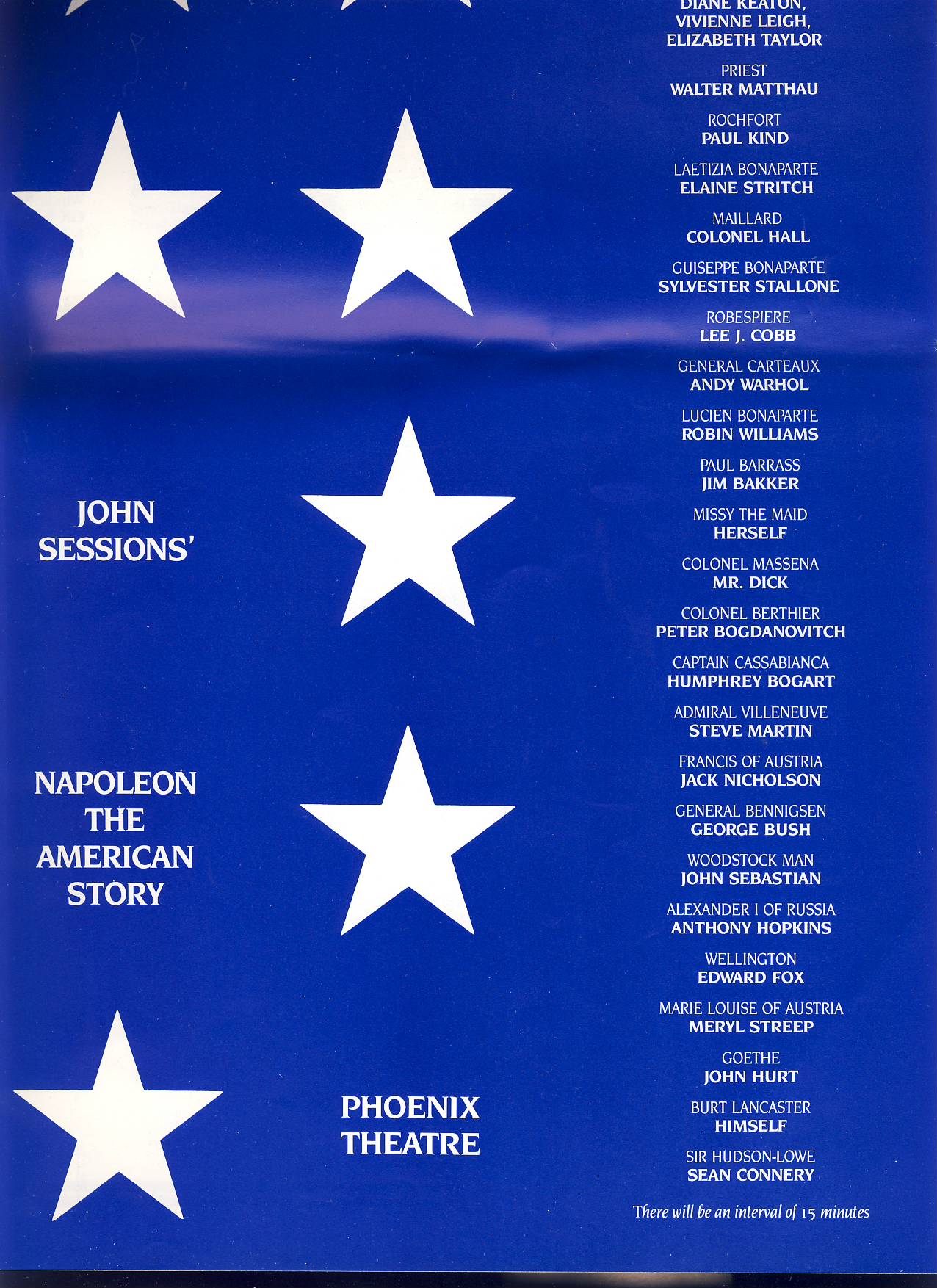 JOHN SESSIONS’ Napoleon The American Story 1980s Renaissance Theatre Company brochure ref102848