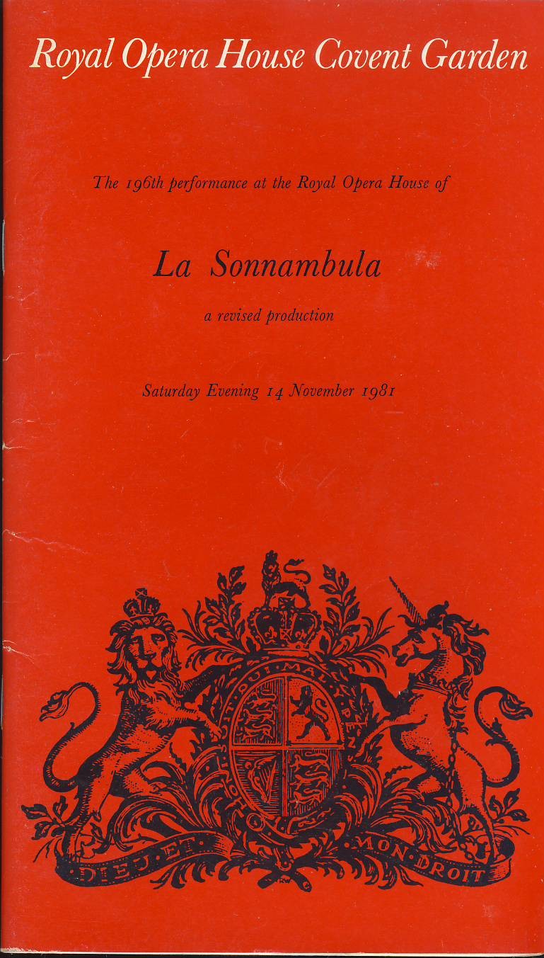 La Sannambula 14 Nov 1981 Programme Royal Opera House Covent Garden C324