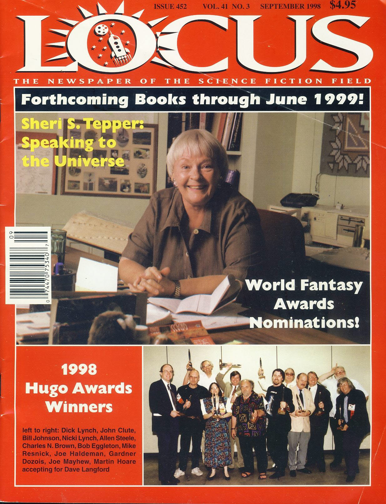 LOCUS Science Fiction Sheri S. Tepper speaking to the Universe 1998 newspaper ref100906