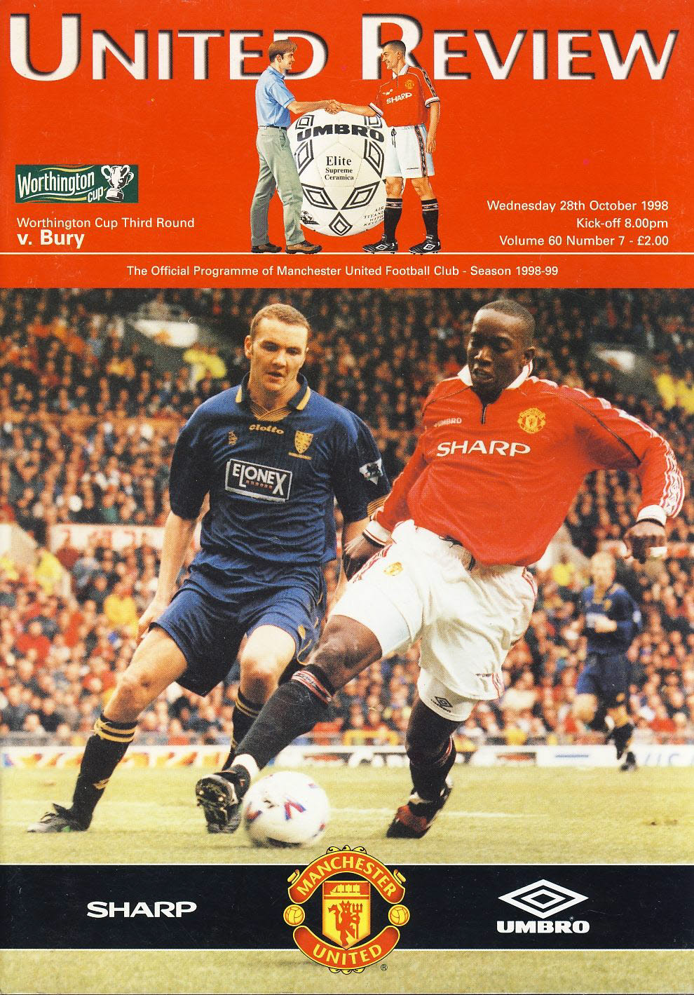 Manchester United v Bury 28th October 1998 Worthington Cup Football Programme f2006