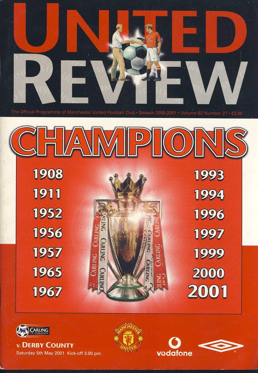 Manchester United v Derby County 5th May 2001 CHAMPIONS Football Programme f2021