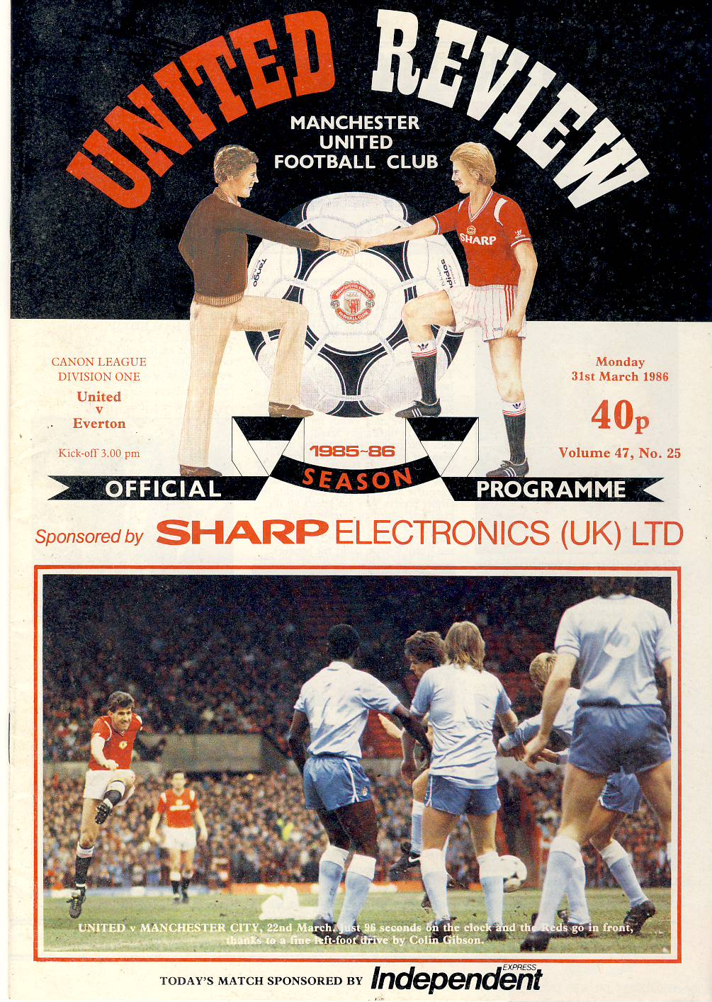Manchester United v EVERTON 31st march 1986Football Programme ref101811