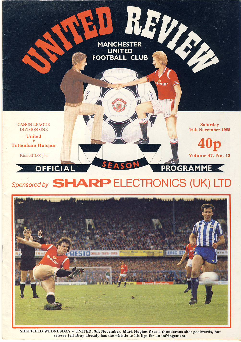 Manchester United v TOTTENHAM HOTSPUR 16th November 1985 Football Programme ref101816