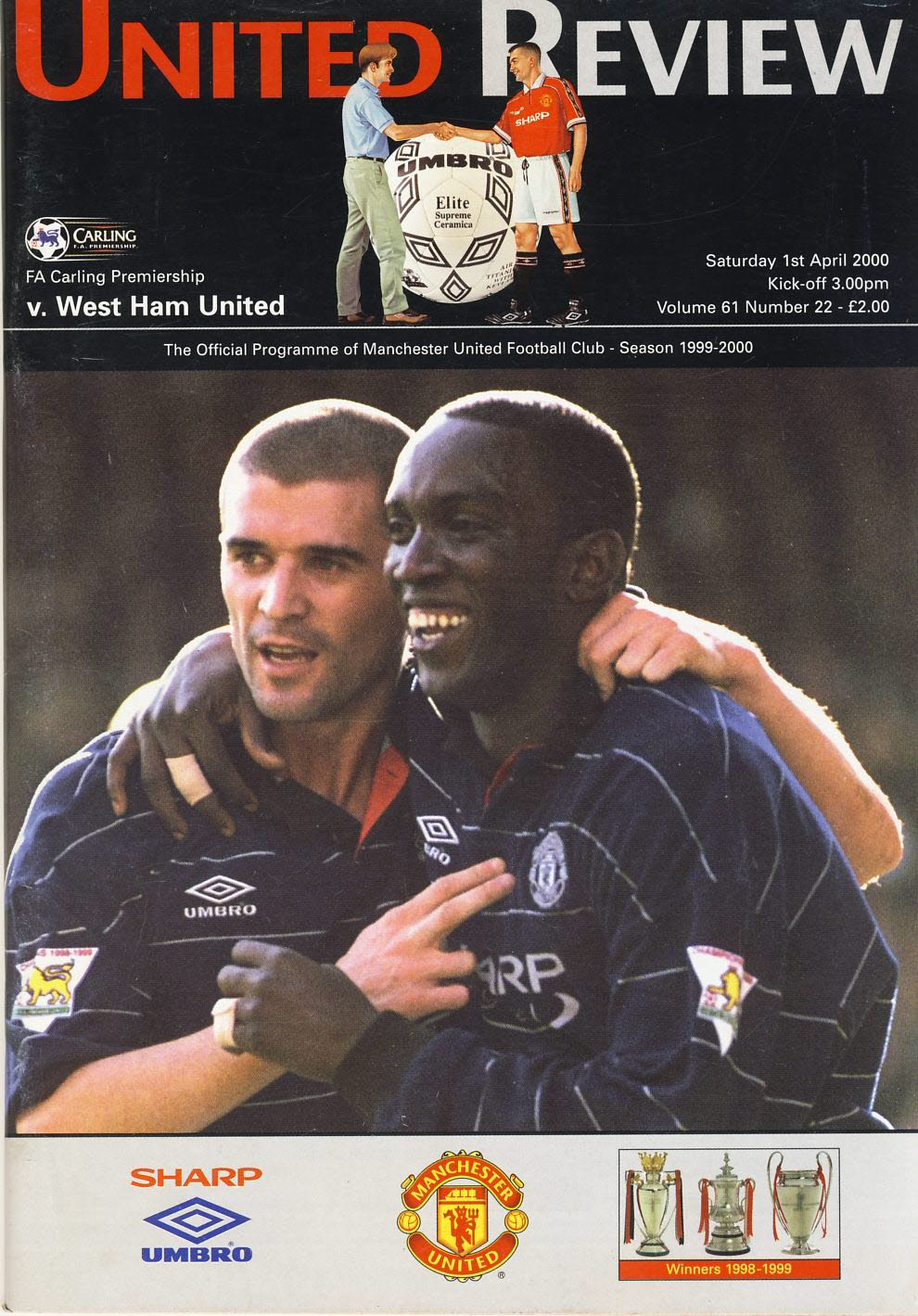 Manchester United v West Ham 1st April 2000 Football Programme f2001