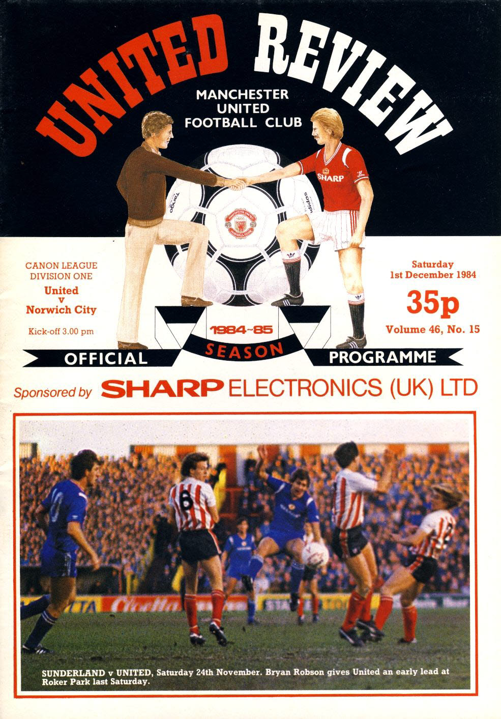 Manchester Utd v Norwich City 1st December 1984 Official Programme refC102016 United Review