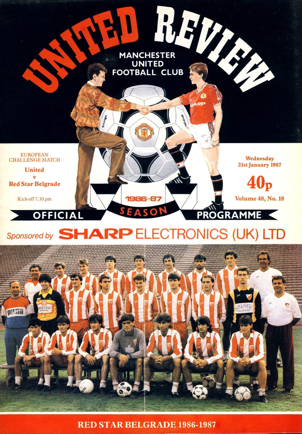 Manchester Utd v Red Star Belgrade 21st January 1987 Official Programme refE102053 United Review