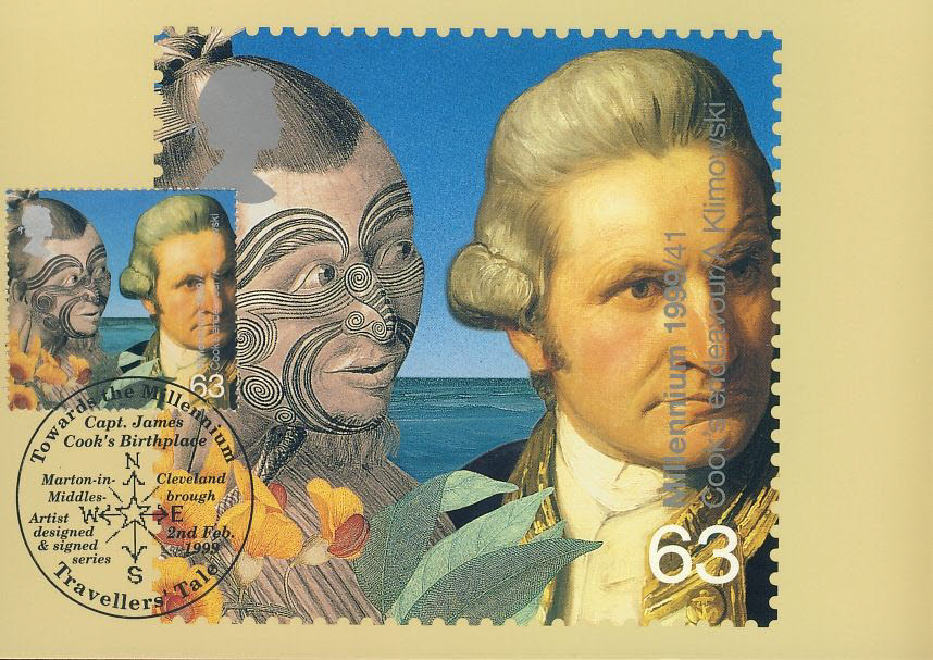 MAORI & Flora Capt. James Cook’s Birthplace Marton-in-Cleveland Middlesbrough Postcard special hand stamp postmark refE134 Special Hand Stamped Postcard in Very Good Condition – address label on reverse.