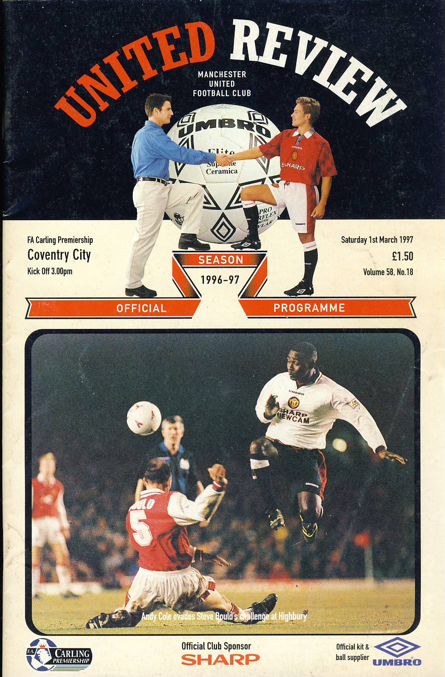 March 1st 1997 Manchester United v COVENTRY CITY Review Football Programme ref101913