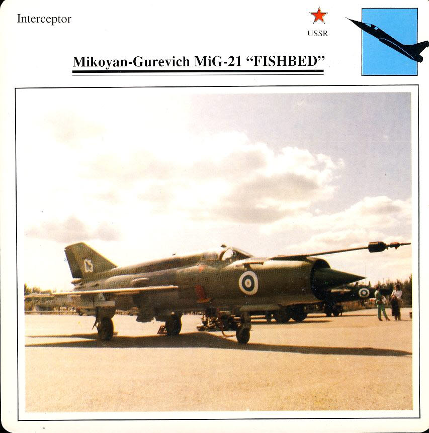 Mikoyan-Gurevick MiG-21 FISHBED Interceptor USSR Military Aircraft Collectors Card refP6