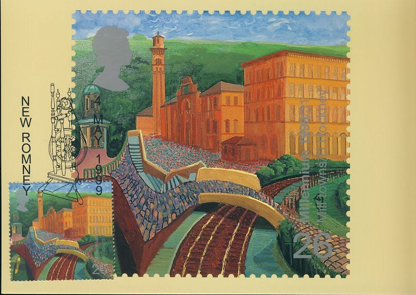 Mill Town NEW ROMNEY Postcard special hand stamp postmark 4th May 1999 refE120 Special Hand Stamped Postcard in Very Good Condition – address label on reverse.