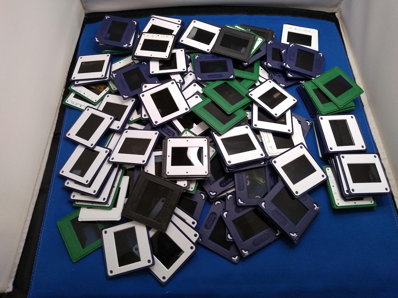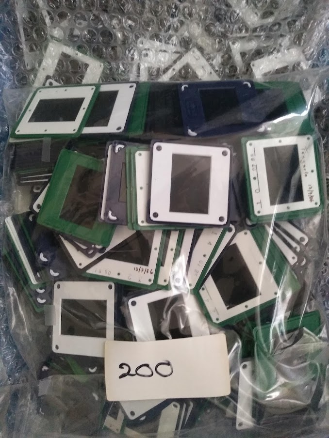 A mixed lot of 200 individual 35mm slides. Selected at random from a large box (approx 5kg in weight) of slides. We have not scanned them or sorted through them but have looked at some and they seem to be mostly countryside, hills, rivers, lakes, some small towns and villages – possibly in the UK and Europe. A few here and there have people as well. Occasionally some have writing on them and when they do the dates seem to be from the 1980s.
