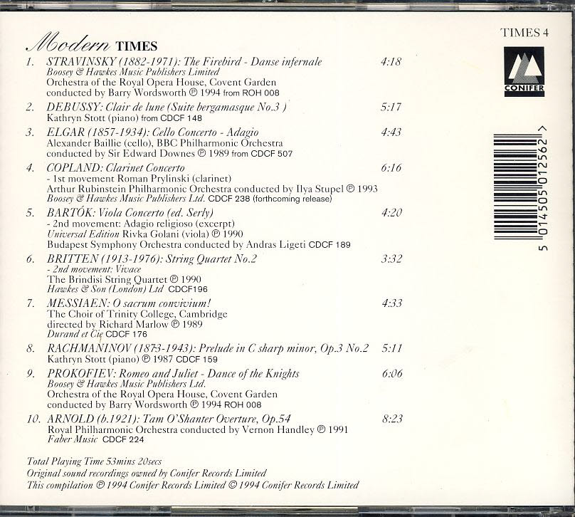Modern Times featuring Stravinsky, Debussy, Britten & others CD refm1106