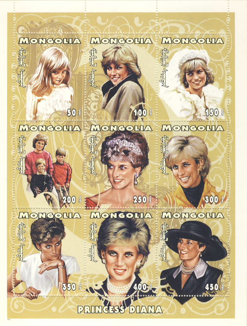 Mongolia 9v Sheetlet Princess Diana stamp sheet 1961 – 1997 refDA141