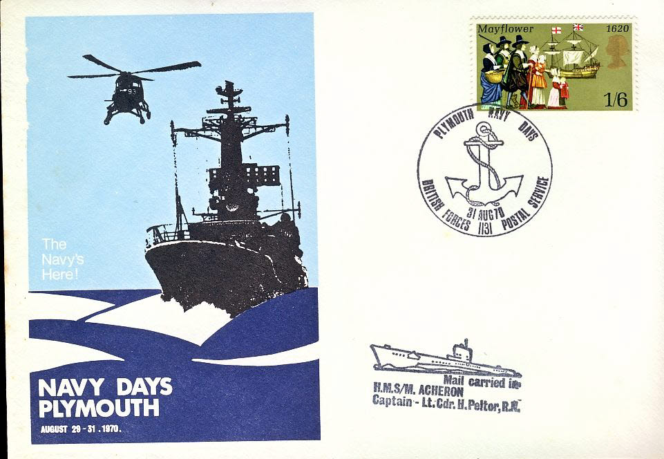 Navy Days PLYMOUTH mail carried Submarine HMS ACHERON Lt.Cdr.H.Peltor R.N. Commemorative stamp cover BFPO 1131 refD210