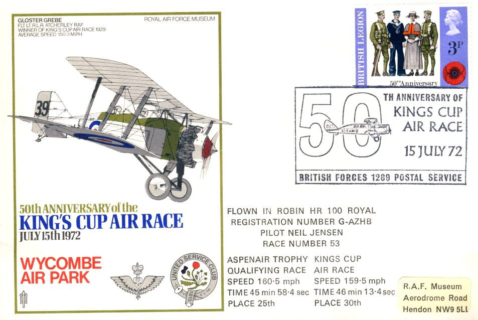 NEIL JENSEN Kings Cup Air Race Wycombe Park RAF flown stamp cover refE126