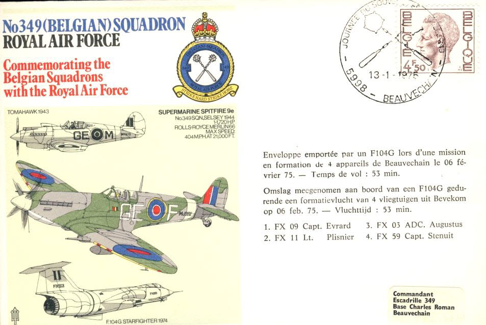 No349 Belgian Squadron RAF 1975 flown stamp cover refE110