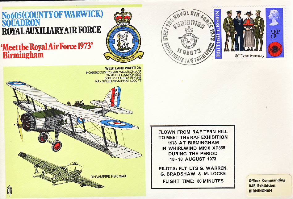 No605 County of Warwick Squadron 1973 RAF flown stamp cover Birmingham BFPO refF177