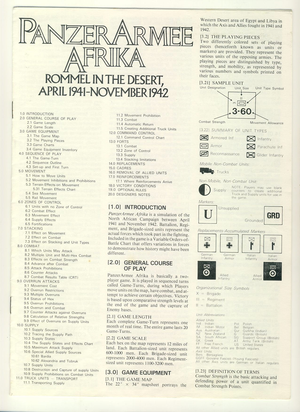 Panzer Armee Afrika Rommel in the Desert Game Rules 8 pages ref1000120 Ideal for additional / replacement in exisiting board game.RULES ONLY no game parts or boards, no extras, freebies, posters, supplements etc. Please see larger photo and full description for details.