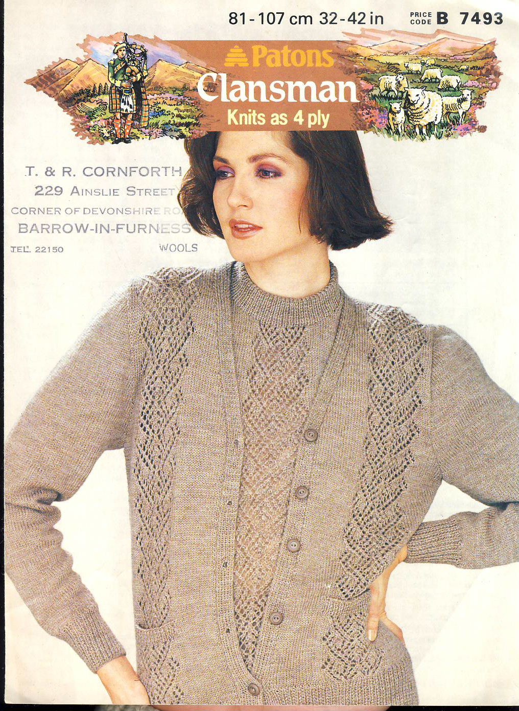 Patons Ladies TWIN SET Clansman Knits as 4 ply Vintage Knitting pattern ref043