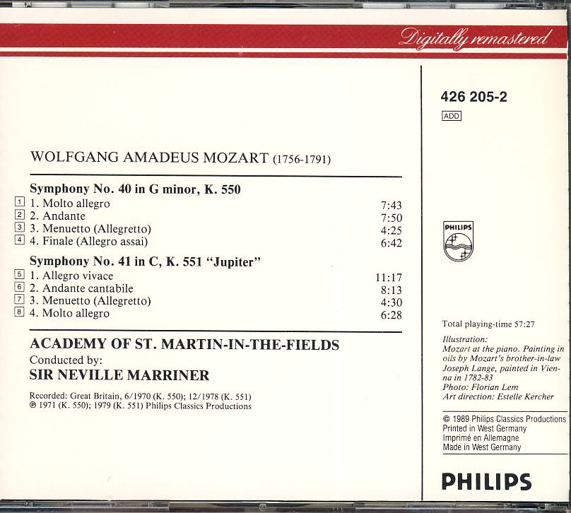 Philips The Mozart Experience VOL.1 Symphonies Nos 40 & 41 Jupiter ASMF Marriner CD 426 205-2 refm1093