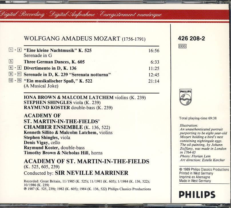 Philips The Mozart Experience VOL.4 Eine Kleine Nachtmusik ASMF Marriner CD 426 208-2 refm1097