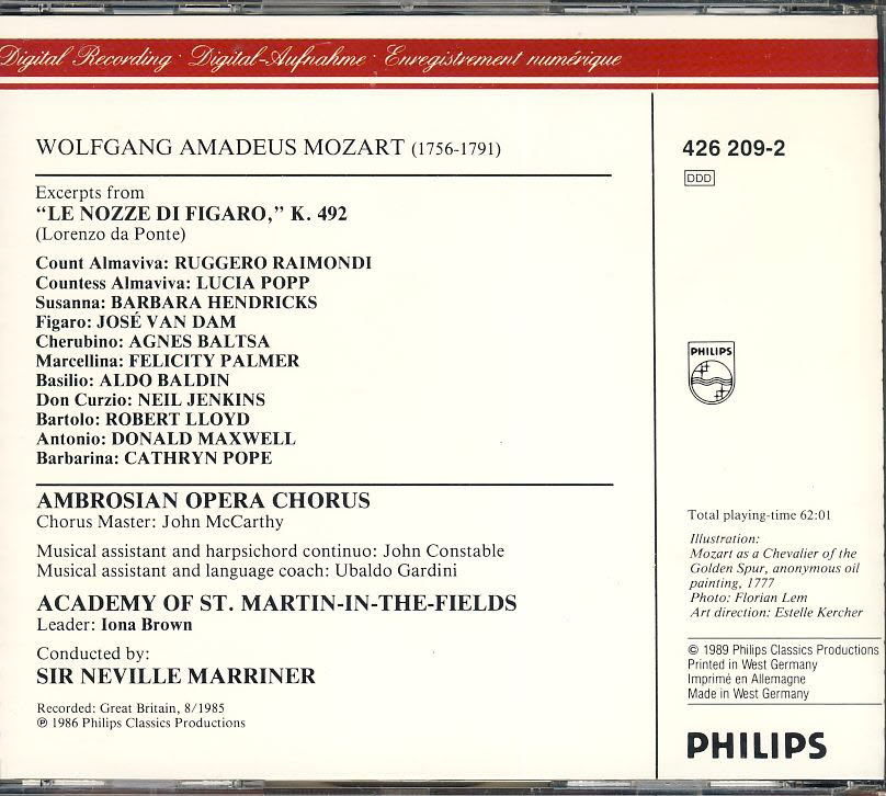 Philips The Mozart Experience VOL.5 Le Nozze di Figaro highlights ASMF Marriner CD 426 209-2 refm1098