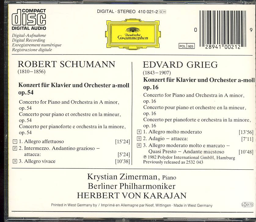 Piano Concertos by Robert Schumann and Edvard Grieg 410 021-2 refm1064