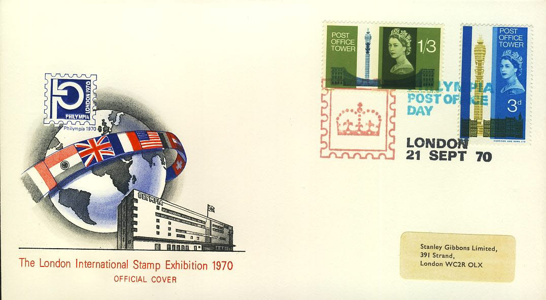 refcd400 Philympia 1970 LONDON STAMP EXHIBITION Official Cover Ltd Issue Post Office Tower Stamps Unsealed – no insert card. Please see larger photo and full description for details.