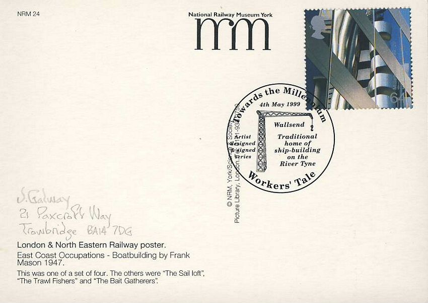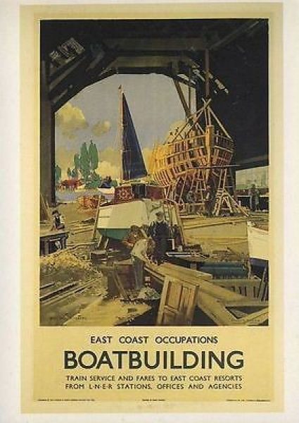 POSTCARD East Coast Occupations Boatbuilding LNER Railway Poster FRANK MASON