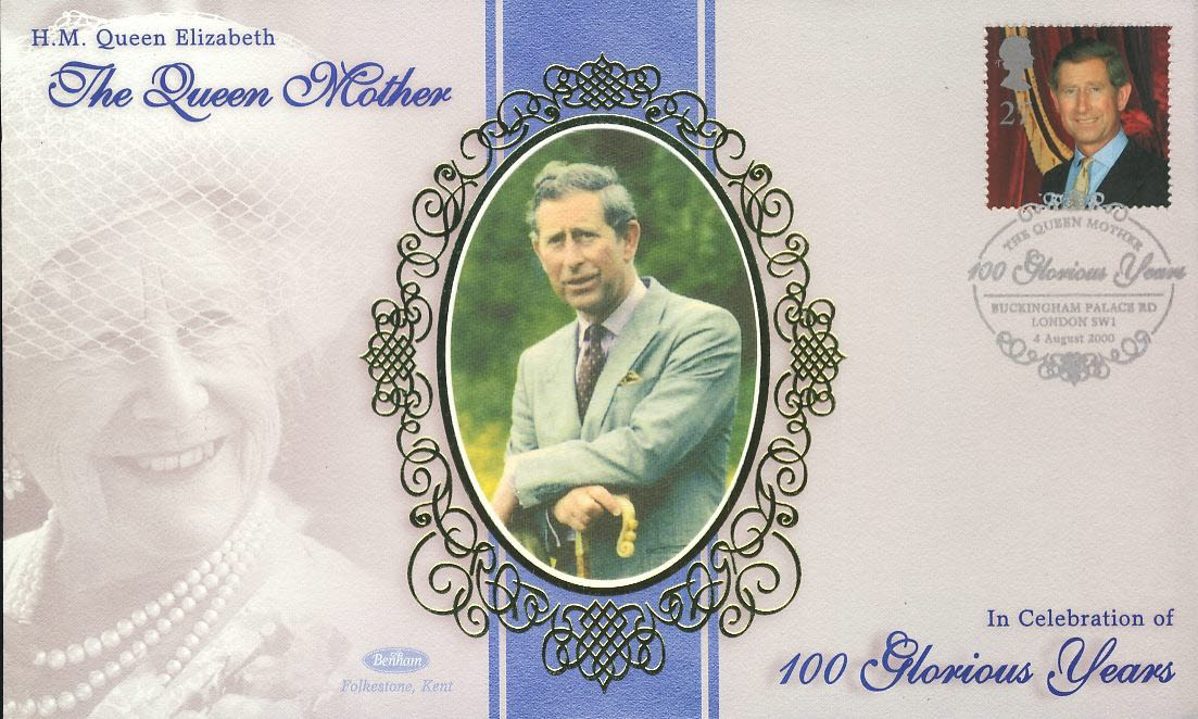 PRINCE CHARLES Buckingham Palace SW1 4th August 2000 silk picture LTD ED stamp cover refE82 Queen Mother 100 Glorious Years Benham Millennium Collection Limited Edition Cover