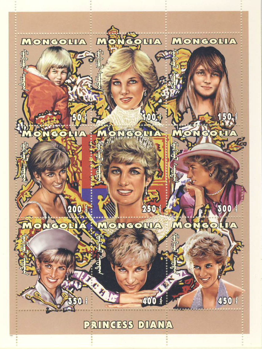 Princess Diana of Wales 1961-97 9v Sheetlet stamp sheet refDA