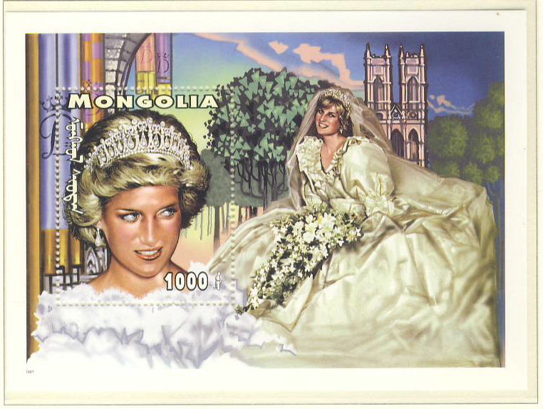 Princess Diana Wedding Dress MONGOLIA 1000F MS stamp sheet refDA140 Diana Princess of Wales 1961-1997 Westminster collectors series. Unused. Ideal Gift. Very good condition