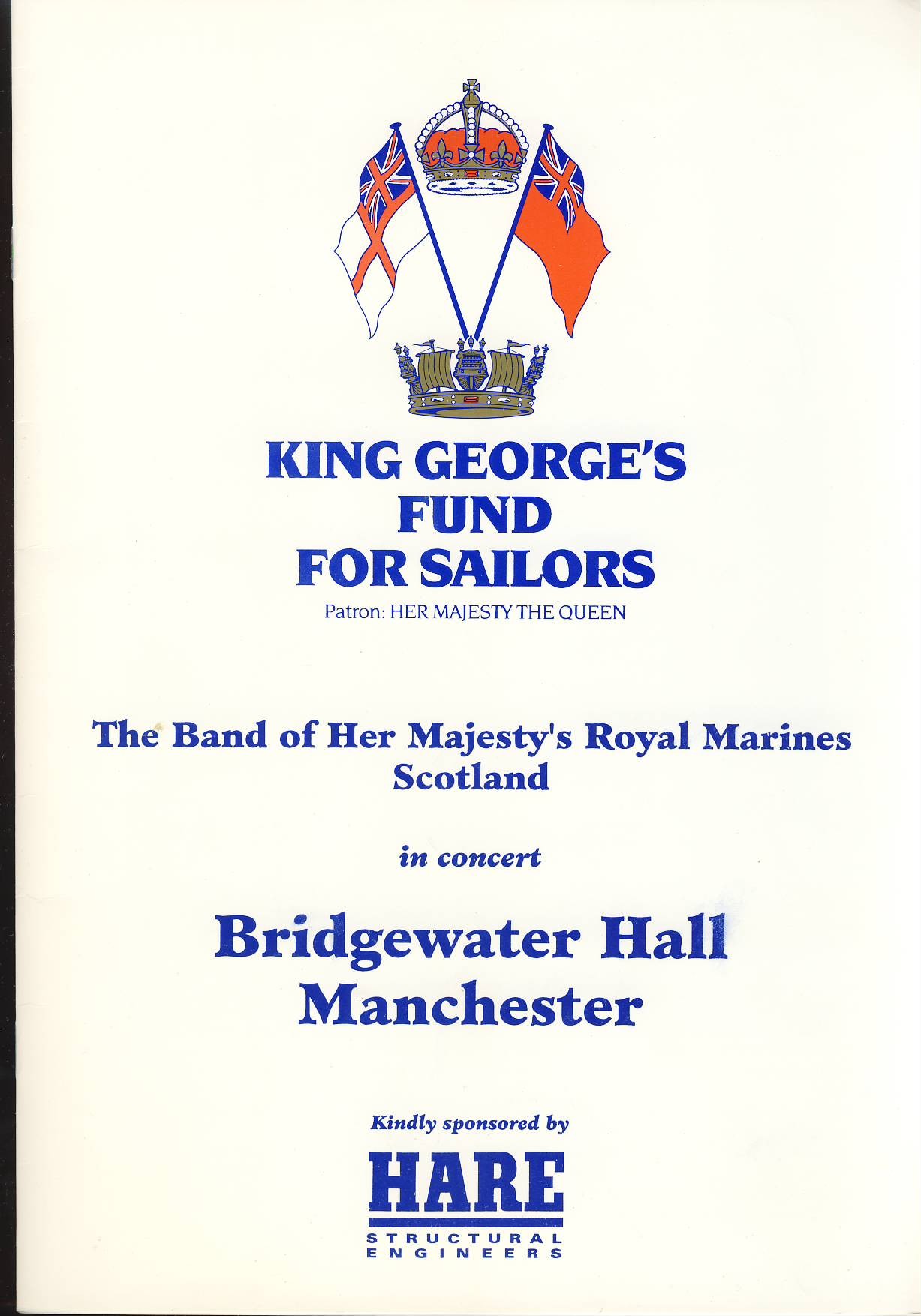 Programme Band of the Royal Marines 1996 Bridgewater Hall Manchester r235