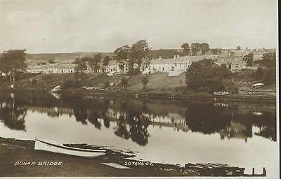 Real photo VALENTINES POSTCARD Bonar Bridge river scene with boat box1