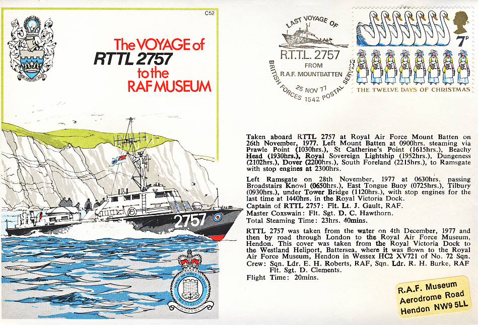 Rescue Target Towing Launch RTTL 2757 RAF Mountbatten Last Voyage 1977 stamp cover BFPO 1542 refF163