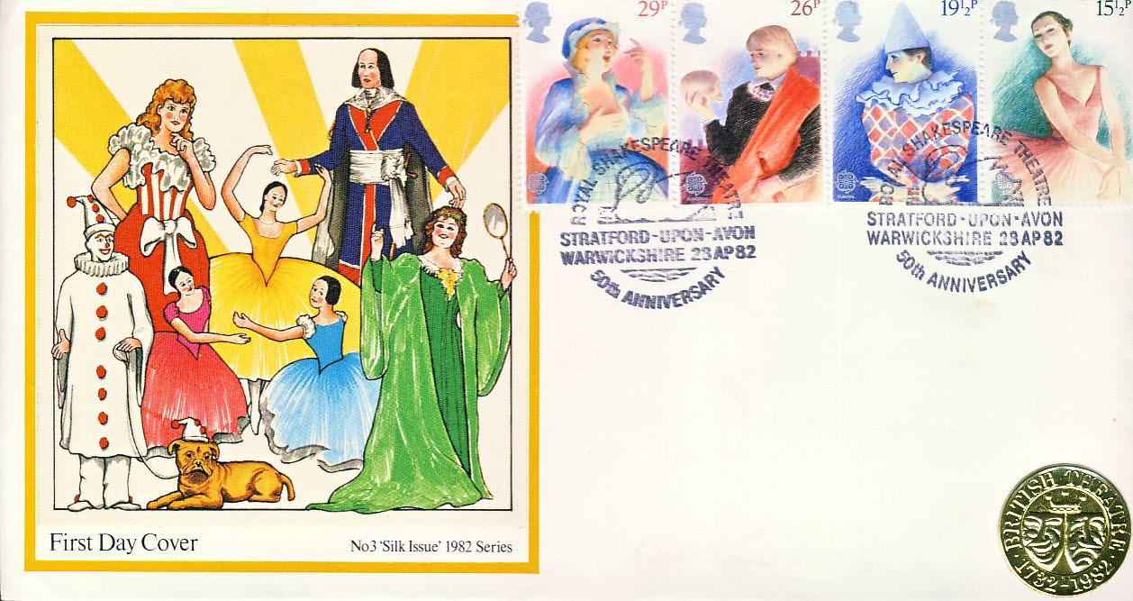 Royal Shakespeare Theatre Stratford-upon-Avon 1982 special handstamp & gold coloured seal stamps cover refE53 Cover in very good condition. Unsealed with insert. Please see larger photo and full description for details.