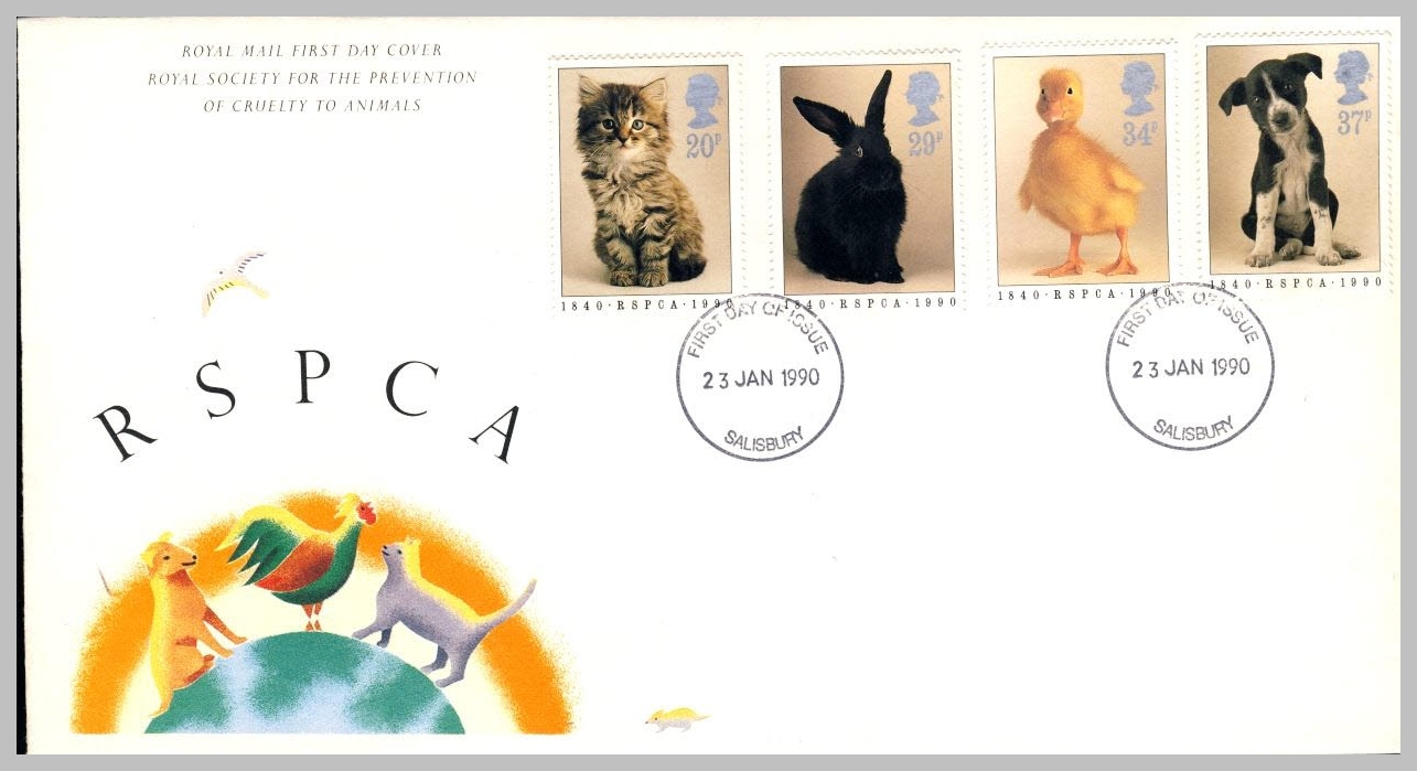 RSPCA 23 Jan 1990 Salisbury posmark first day of issue stamp cover FDC refE228 Cover in good condition. Please see larger photo and full description for details.