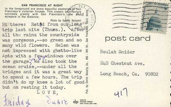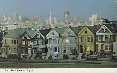 San Francisco by night 1978 Victorian Houses VINTAGE POSTCARD b3 Marina del Rey cds