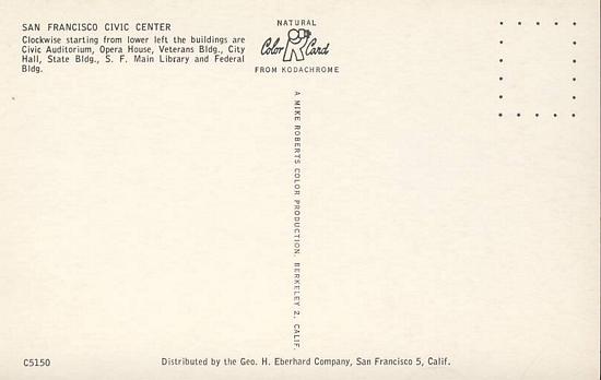 San Francisco Civic Centre Aerial View of City VINTAGE POSTCARD box3 CALIFORNIA