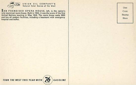 San Francisco Opera House Union Oil Company 76 Gasoline VINTAGE POSTCARD box3